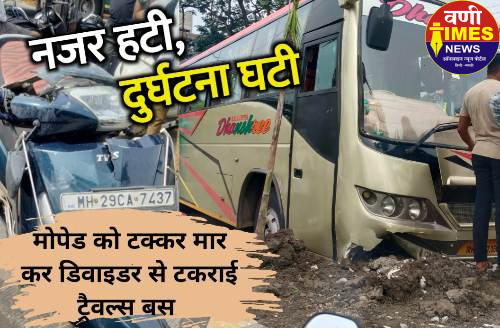 वणी टाईम्स न्यूज : अचानक सामने आए मोपेड सवार को बचाने की कवायद में ट्रैवल्स बस डिवाइडर से टकरा गई। गनीमत यह रही ही इस दुर्घटना में ट्रैवल्स बस ने सफर कर रहे यात्री बाल बाल बच गए। जबकि मोपेड सवार व्यक्ति को मामूली चोटें लगी। उक्त घटना बुधवार सुबह 8.30 बजे के लगभग वणी वरोरा मार्ग पर एल. टी. कॉलेज के पास घटित हुई। दुर्घटना के बाद बस के सभी यात्रियों को दूसरी बस से गंतव्य के लिए रवाना किया गया।