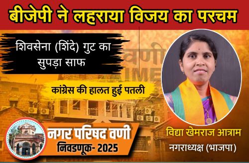 जितेंद्र कोठारी, वणी: स्थानीय नगर परिषद चुनाव में भारतीय जनता पार्टी ने बंपर जीत हासिल करते हुए विरोधी पार्टियों को धूल चटा दी। बीजेपी की नगराध्यक्ष पद की प्रत्याशी विद्या खेमराज आत्राम ने अपनी प्रतिद्वंदी शिवसेना (उद्धव ठाकरे) की उम्मीदवार डॉ. संचिता नगराळे (गेडाम) को 4785 वोटों से पराजित कर दिया। भाजपा ने नगरसेवक पद की 29 में से 18 सीटों पर कब्जा कर शहर में अपना दबदबा कायम रखा।