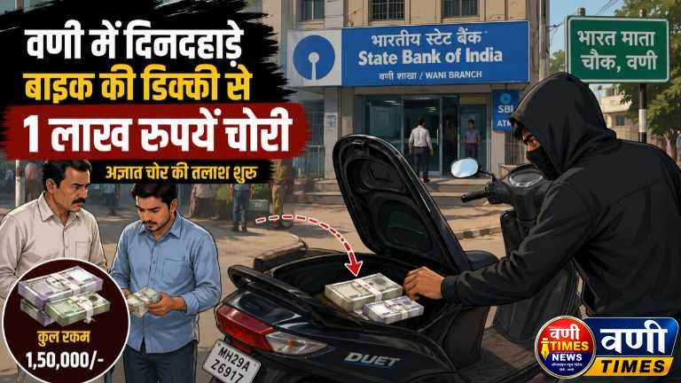 वणी टाईम्स न्यूज : मोपेड की डिक्की में रखे एक लाख रुपए पर अज्ञात चोरों ने हाथ साफ कर दिया। शहर के भारतमाता चौक पर 23 अप्रैल 2026 को दोपहर 11.30 बजे के लगभग घटी चोरी की वारदात के बारे में शिकायतकर्ता अजय भोजराज टोंगे (25) निवासी भालर ने वणी पुलिस थाने में रिपोर्ट दर्ज कराई है