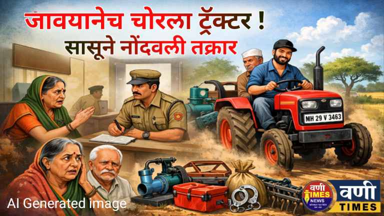 वणी टाईम्स न्युज | कौटुंबिक विश्वासाला तडा देणारी धक्कादायक घटना मारेगाव शेतशिवारात समोर आली आहे. स्वतःच्या जावयानेच सासूच्या मालकीचा ट्रॅक्टर व शेतीची अवजारे चोरून नेल्याची तक्रार मारेगाव पोलीस स्टेशनमध्ये दाखल झाली आहे.