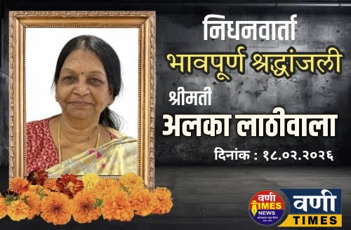 वणी टाईम्स न्यूज : शहर के प्रतिष्ठित लाठीवाला पेट्रोल पंप के संचालक पियूष लाठीवाला की माताजी श्रीमती अलका दिलीप लाठीवाला (67 वर्ष) का बुधवार, 18 फरवरी 2026 को सुबह लगभग 4 बजे निधन हो गया। उनके निधन से शहर के व्यापारिक एवं सामाजिक क्षेत्र में शोक की लहर व्याप्त है।