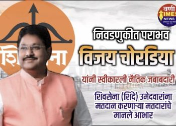 वणी टाईम्स न्यूज : स्थानिक नगरपरिषद निवडणुकीत शिवसेना (एकनाथ शिंदे) पक्षाच्या दारुण पराभवानंतर पक्षाचे नेते विजय चोरडिया यांनी पराभवाची नैतिक ...