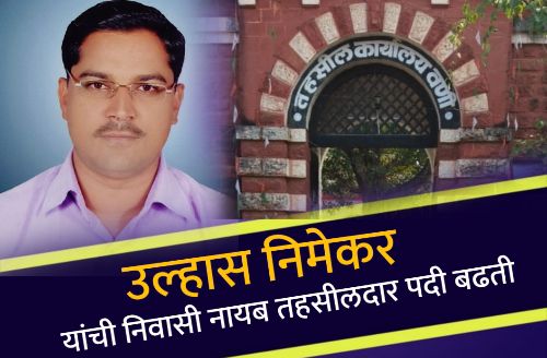 वणी टाईम्स न्युज: वणी महसूल विभागात मंडळ अधिकारी म्हणून कार्यरत असलेले उल्हास निमेकर यांची निवासी नायब तहसीलदार पदी पदोन्नती झाली आहे. कर्तव्यनिष्ठा, प्रामाणिक कार्यशैली आणि जनतेशी सलोख्याचे संबंध ही त्यांची ओळख असून, त्यांनी आपल्या सेवाकाळात महसूल विभागातील विविध जबाबदाऱ्या प्रभावीपणे पार पाडल्या आहेत.